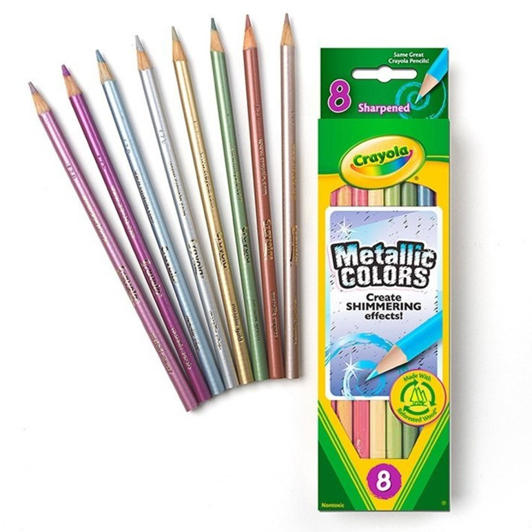 Caja de 8 lápices de colores metálicos.