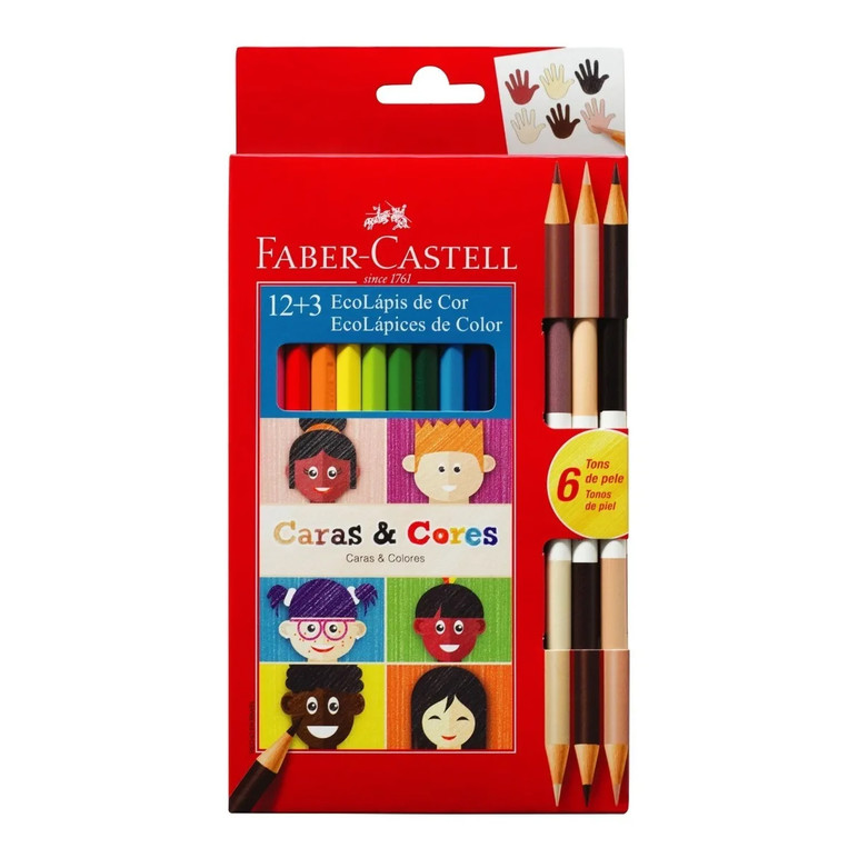 Lápices de colores: incluye 12 lápices de colores clásicos + 3 lápices bicolor sumando 6 tonos piel.