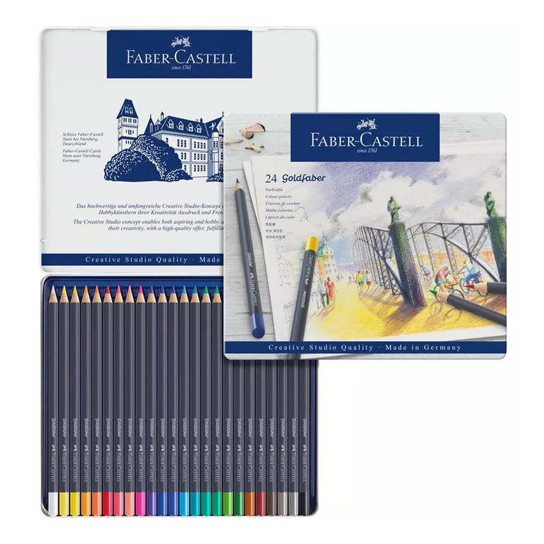 Estuche metálico con 24 lápices de color Goldfaber.