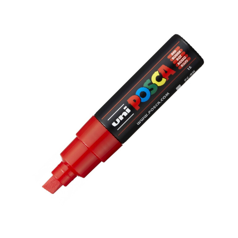 Marcador Uni Posca Al Agua Punta Chanfle Pc-8K Comun Rojo